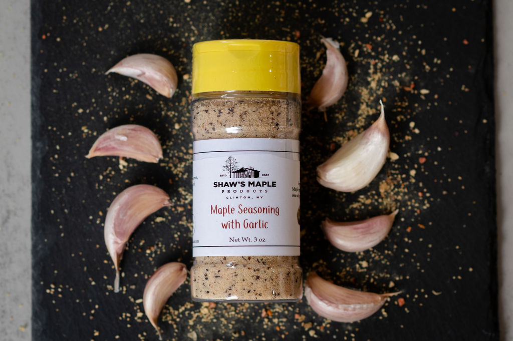 Ingredients: Maple granulated sugar, ground black pepper, sea salt & garlic powder.