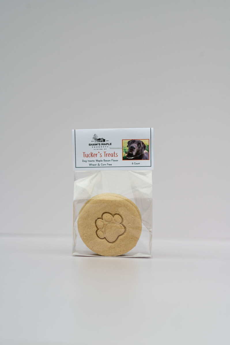NYS Licensed dog treats. Wheat, corn and preservative free. Homemade dog treats for your furry family member. Made with our maple syrup and all natural bacon flavor. Tested and approved by our very own “Tucker.”