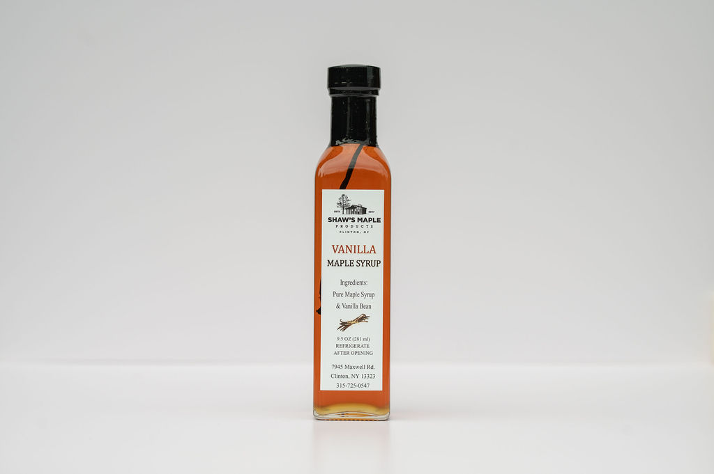 Vanilla bean-aged maple syrup is pure maple syrup infused with organic Grade A Madagascar vanilla beans.